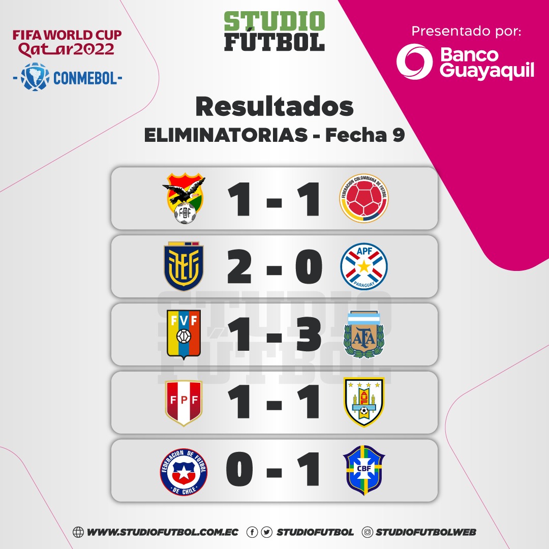 Estos son los partidos de la triple cartelera que habrá en. Resultados clasificación general y próximos partidos de las eliminatorias sudamericanas tras la novena jornada en la que brasil llegó a 24 puntos de 24. Siguen las eliminatorias de la conmebol rumbo al mundial de qatar 2022.